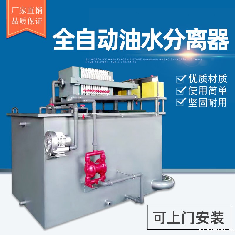 油水分离器的技术基本原理:餐饮含油废水按进水口进入餐饮油污处理设备外壳,然后安装在进水管的不锈钢板渣箱内,自动将粗大颗粒从污物中分离出来。废水通过填料和斜柱后,进入气浮机区,微气泡发生器在此产生细小气泡。由于界面张力作用,微气泡发生器的极细气泡在向上调整过程中溶解了大部分来自水中的乳化液,水中的细小残渣和油脂附着在细小气泡上。经过隔油池后没有含油的水从出水口排出。